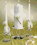 The unity pillar candle is designed with small delicate ribbons and features handcrafted porcelain Calla Lily flowers accented by a large white sheer ribbon.